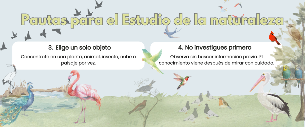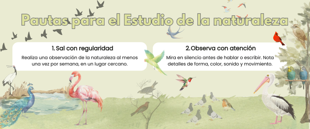 “No puede haber educación más saludable que la que se obtiene al observar las naves de las aves, los hábitos de los insectos y la vida de las flores; pues esto no solo cultiva los sentidos, sino que llena la mente con ideas frescas y vitales.” — Charlotte Mason, Home Education (Vol. 1)